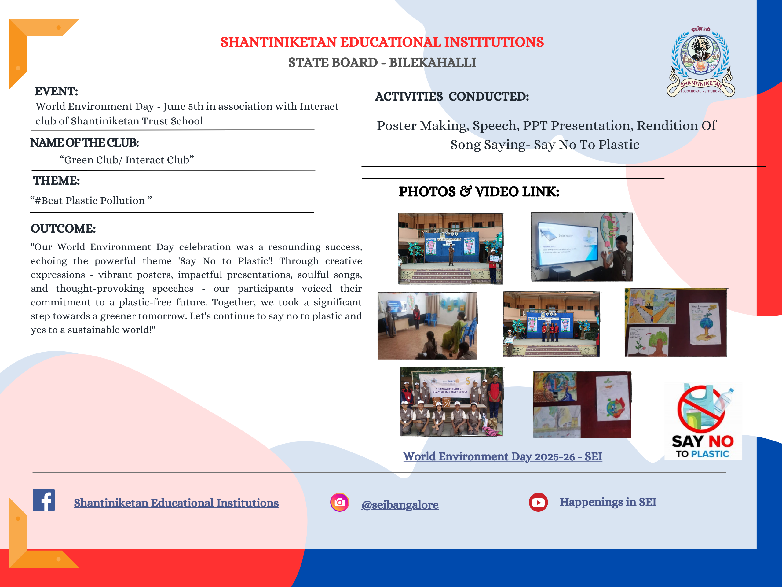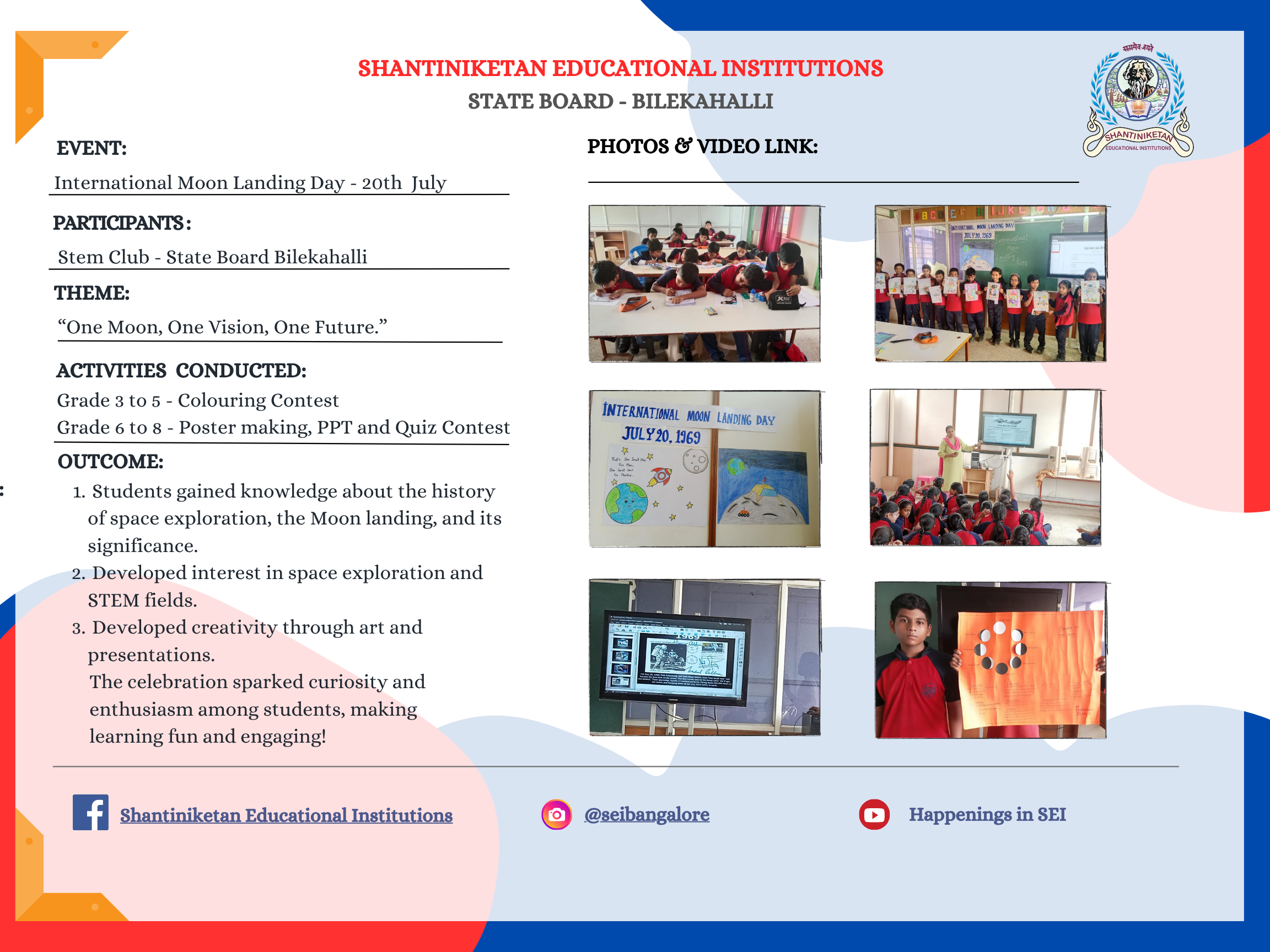Back SEI Events 2025-26(State-Bilekahalli ) STATE WORLD ENVIRONMENT DAY -Bilekahalli / state CLUB INAUGURATION DAY -Bilekahalli / state INVESTITURE CEREMONY -Bilekahalli / state INTERNATIONAL MOON LANDING DAY -Bilekahalli / state INTERNATIONAL YOGA DAY -Bilekahalli / state Krishna Janmastami -Bilekahalli / state HINDI DIWAS -Bilekahalli / state Sports Magazine 2025–26 × -Bilekahalli / state July month Green Club activities -Bilekahalli / state SANSKRIT DIWAS EVENT -Bilekahalli / state NATIONAL MATHEMATICS DAY -Bilekahalli / state WORLD SOIL DAY -Bilekahalli / state WORLD SCIENCE DAY -Bilekahalli / state CONSTITUTION DAY -Bilekahalli / state HINDI DIWAS -Bilekahalli / state